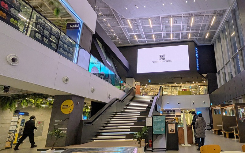 サンサンマダンは映画館やカフェ、ショップ、ギャラリーなどが入るビルでおしゃれで洗練された印象。